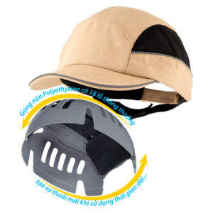 The inner lining of the lightweight and very breathable Bump Cap ATS-NBC04 helmet is made of polypropylene and a comfortable EVA foam shell to absorb shock and withstand strong impacts.