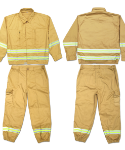 (Theo thông tư 48 thì bộ quần áo chữa cháy này là đồng phục của dân phòng tại các cơ sở, chất liệu sản xuất không có tác dụng chống cháy- Chỉ có vải Nomex mới có tác dụng chống cháy)