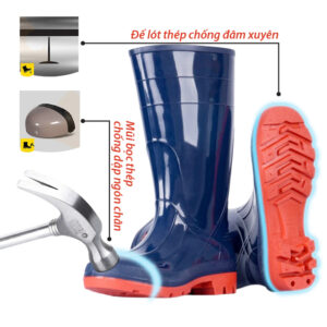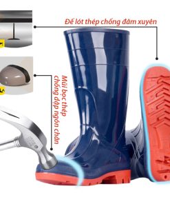 • Tính năng: Mũi ủng bọc thép chống dập ngón chân, chịu nước, đế lót thép chống đâm xuyên, trơn trượt, chống tĩnh điện, Sản phẩm 100% làm từ nguyên sinh, thân thiên môi trường.